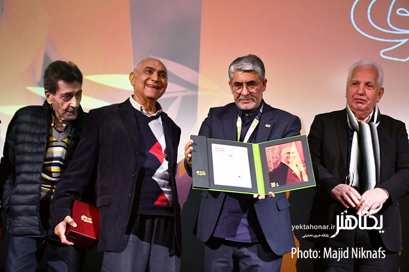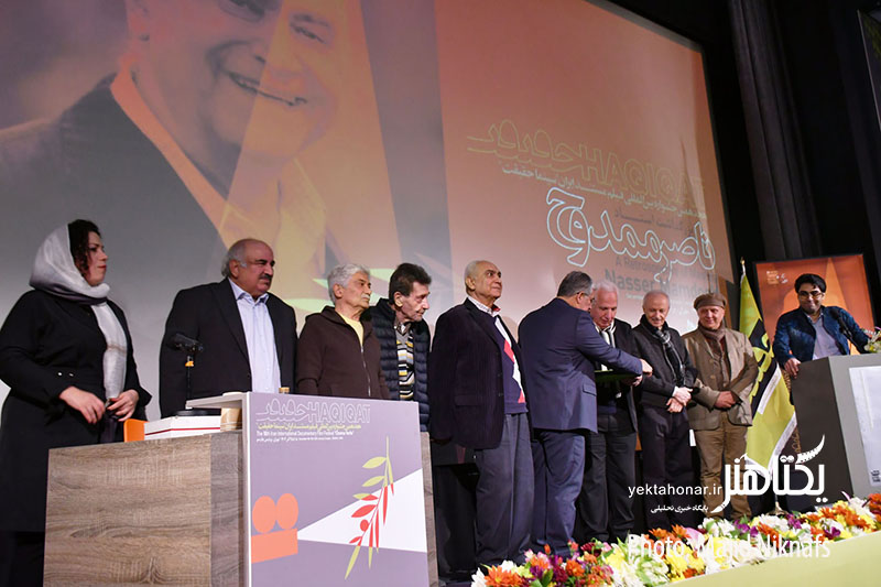 در این مراسم، لوح و نشان فیروزه جشنواره سینماحقیقت به ناصر ممدوح اهدا شد.