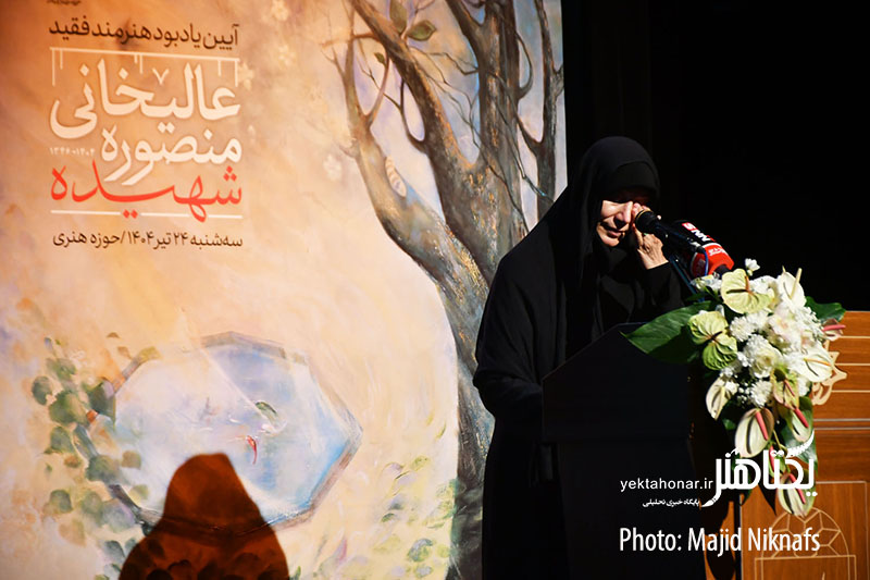 به گزارش یکتا هنر به نقل از روابط عمومی مرکز هنرهای تجسمی حوزه هنری، مراسم بزرگداشت منصوره عالیخانی هنرمند نقاشی که در حمله رژیم صهیونسیتی به ایران، به همراه همسرش سعید برجی دانشمند هسته‌ای کشورمان به شهادت رسید، عصر سه‌شنبه ۲۴ تیرماه با اجرای رسالت بوذری و با حضور محمدمهدی دادمان رئیس حوزه هنری، نادره رضایی معاون هنری وزیر فرهنگ، نیکنام حسین‌پور مدیر روابط عمومی وزارت فرهنگ، محمد زرویی نصرآباد مدیرعامل موسسه فرهنگی هنری نام، آیدین مهدی‌زاده مدیرکل هنرهای تجسمی، سیدامیر جاوید قائم مقام رئیس حوزه هنری در امور بین‌الملل، کاظم چلیپا، سیدعلی میرفتاح، عبدالحمید قدیریان، محمود عبدالحسینی، سیدحمید شریفی آل هاشم، صابر شیخ رضایی، مهدی متولیان مدیرکل تجسمی بنیاد روایت فتح، محمد حبیبی، طاهر شیخ‌الحکمایی، حسین عصمتی، ناصر سیفی، مجید ریاضی، مینا صدری، خانواده و جمعی از هنرمندان نقاش و دوستان شهید عالیخانی، برگزار شد.