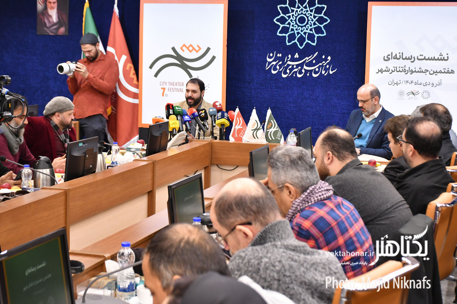 نشست رسانهای و رونمایی از پوستر هفتمین جشنواره تئاتر «شهر» با حضور محمد خراسانیزاده معاون هنری سازمان فرهنگی و هنری جشنواره و امین اشرفی دبیر جشنواره، صبح شنبه ۲۲ آذر برگزار شد.