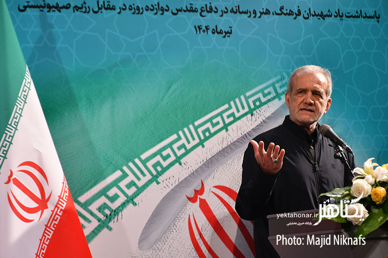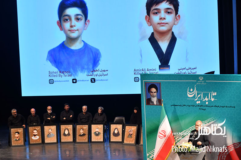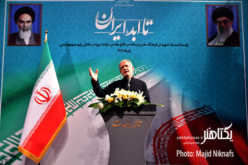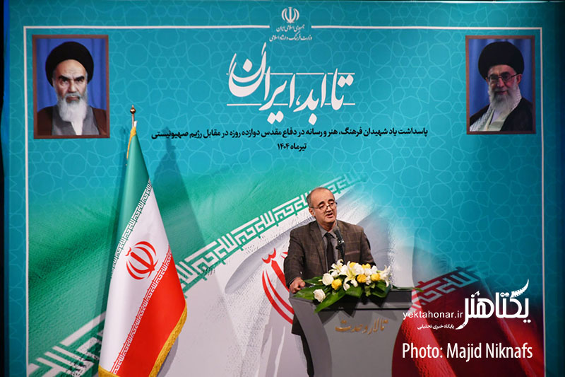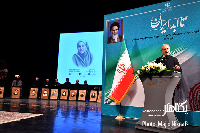 همایش «تا ابد، ایران» به منظور تقدیر از مقام شهدای هنرمند و فعالان رسانه و خانوادهی آنها صبح امروز سه شنبه ۳۱ تیر ۱۴۰۴ با حضور مسعود پزشکیان رئیس جمهور و سید عباس صالحی وزیر ارشاد و خانواده شهدا در تالار وحدت برگزار شد.