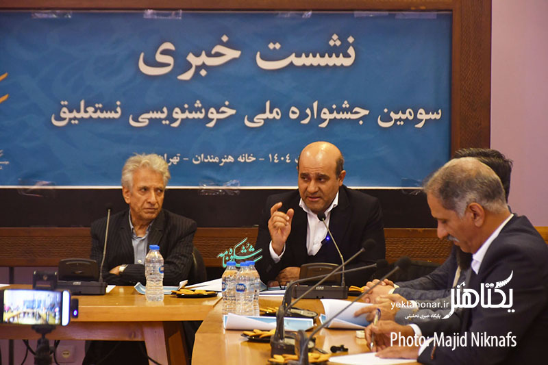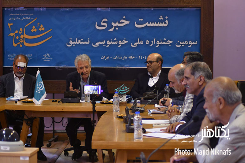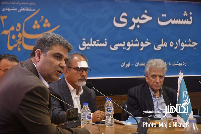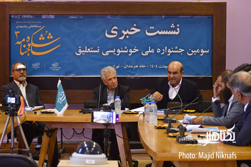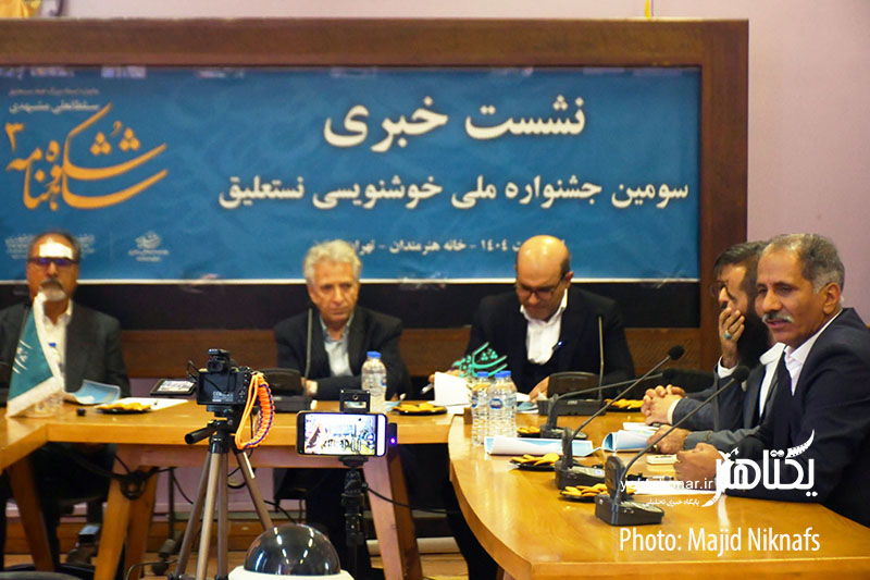 نشست خبری سومین جشنواره ملی خوشنویسی نستعلیق شکوه شاهنامه با حضور هادی سعیدخانی دبیر، علی اشرف صندوق آبادی، میرحیدر موسوی خوشنویس و از داوران این جشنواره، رسول مرادی و علی شیرازی هنرمندان خوشنویس و جمعی از اعضای انجمن خوشنویسان ایران در سالن امیرخانی خانه هنرمندان برگزار شد.