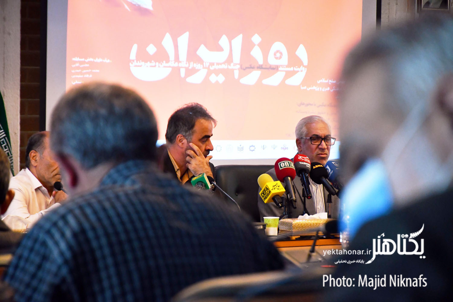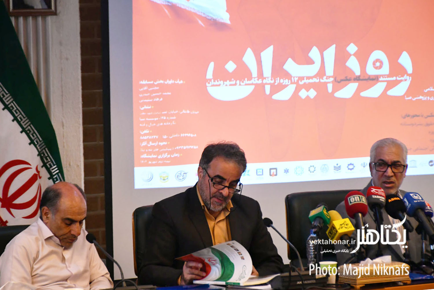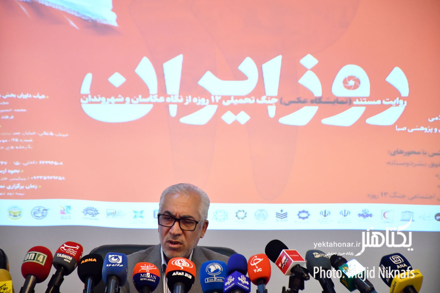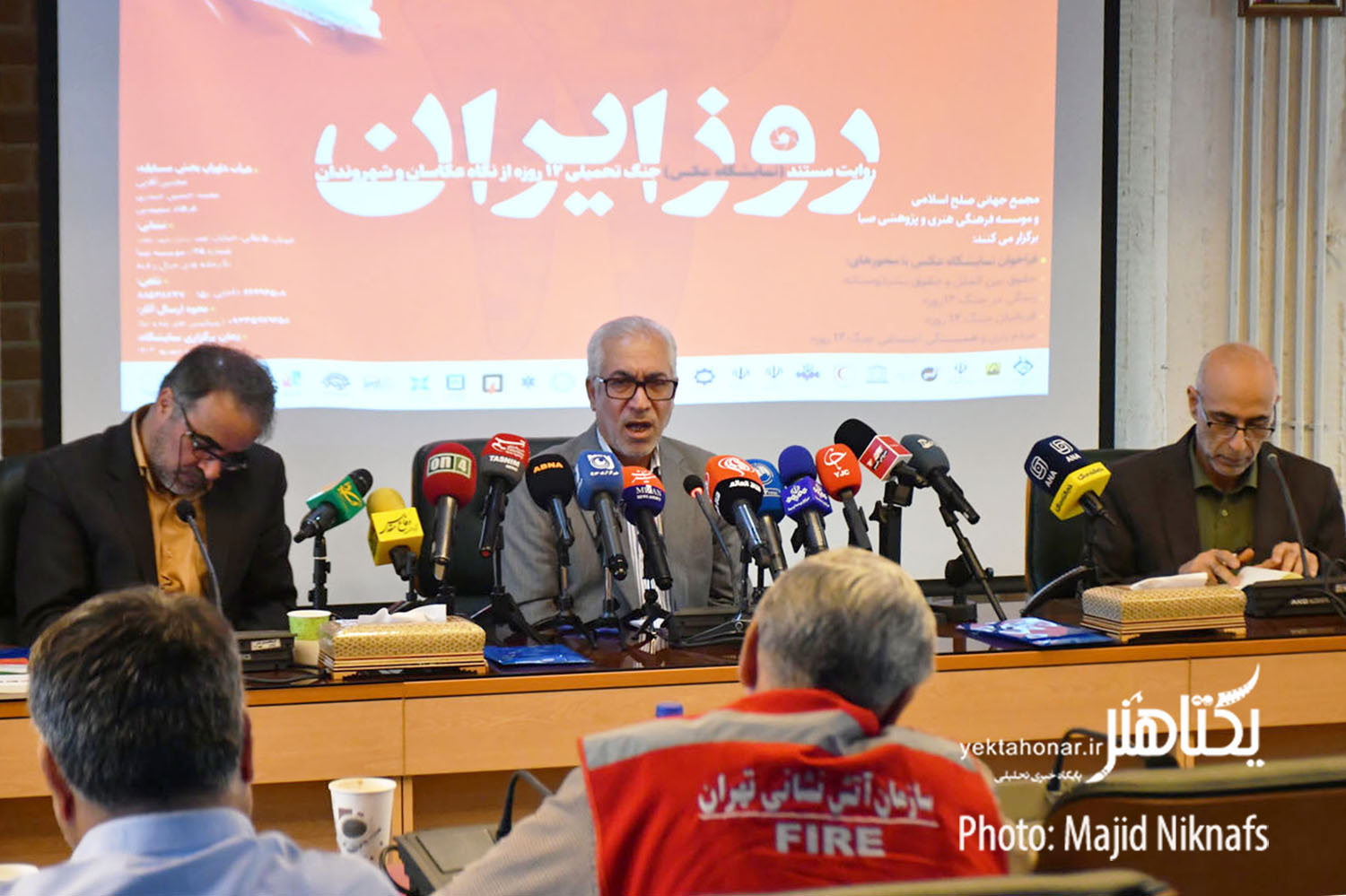 نشست خبری رویداد ملی عکس «۱۲ روز ایران» سهشنبه ۱۱ شهریور با حضور داوود عامری دبیرکل مجمع جهانی صلح اسلامی و رئیس رویداد، بهنام زنگی رئیس موسسه فرهنگی، هنری و پژوهشی صبا و دبیر اجرایی رویداد، محمدحسین حیدری مدیر انجمن عکاسان انقلاب و دفاع مقدس و داور این رویداد، هومن عظیمی مدیرکل مطبوعات و خبرگزاریهای داخلی و عبدالرحیم فیروززاده مدیر حوزه ریاست فرهنگستان هنر برگزار شد.