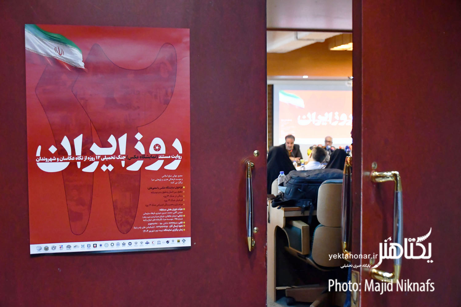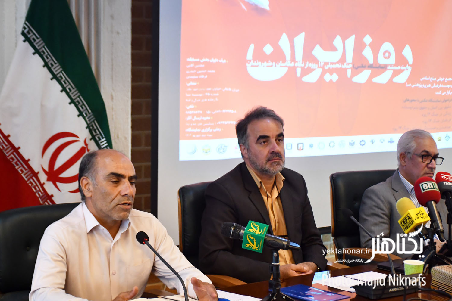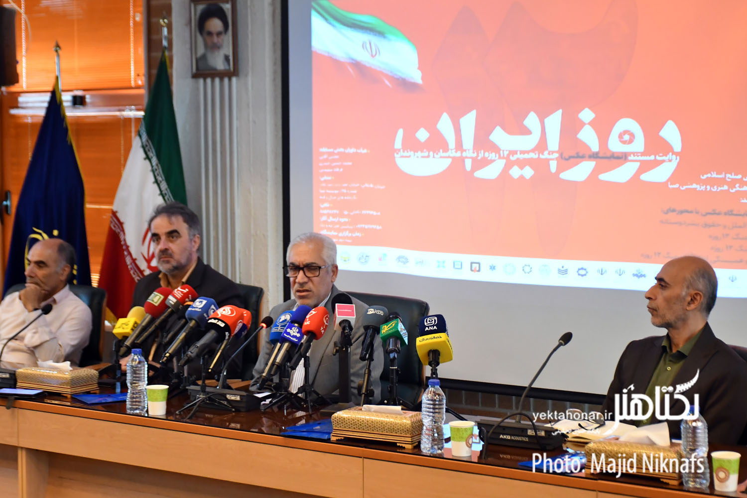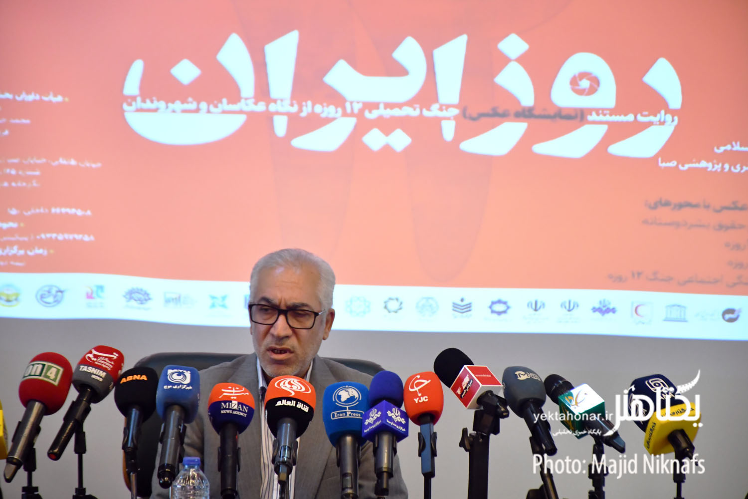 نشست خبری رویداد ملی عکس «۱۲ روز ایران» سهشنبه ۱۱ شهریور با حضور داوود عامری دبیرکل مجمع جهانی صلح اسلامی و رئیس رویداد، بهنام زنگی رئیس موسسه فرهنگی، هنری و پژوهشی صبا و دبیر اجرایی رویداد، محمدحسین حیدری مدیر انجمن عکاسان انقلاب و دفاع مقدس و داور این رویداد، هومن عظیمی مدیرکل مطبوعات و خبرگزاریهای داخلی و عبدالرحیم فیروززاده مدیر حوزه ریاست فرهنگستان هنر برگزار شد.