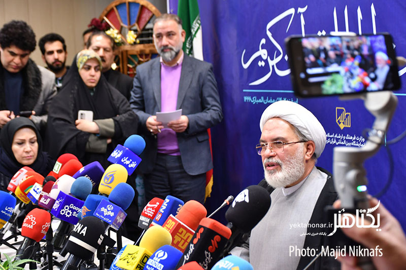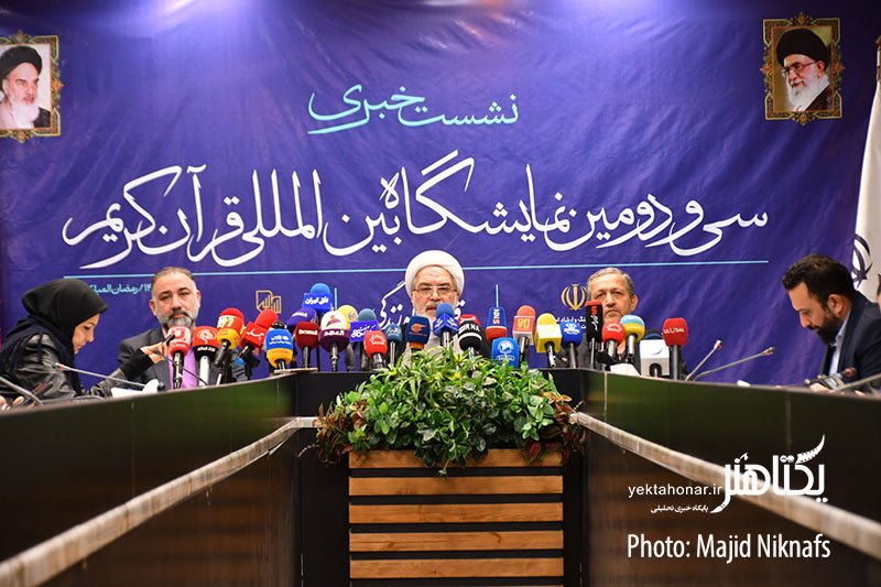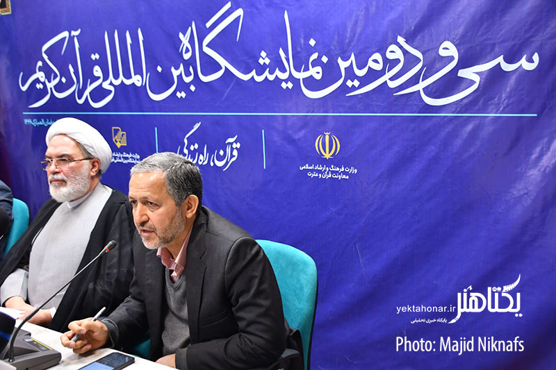 نشست خبری برگزاری سی و دومین نمایشگاه بینالمللی قرآن دوشنبه ۱۳ اسفند ماه در معاونت قرآن و عترت با حضور حجتالاسلام ارباب سلیمانی، معاون قرآن و عترت وزارت فرهنگ و ارشاد اسلامی برگزار شد.