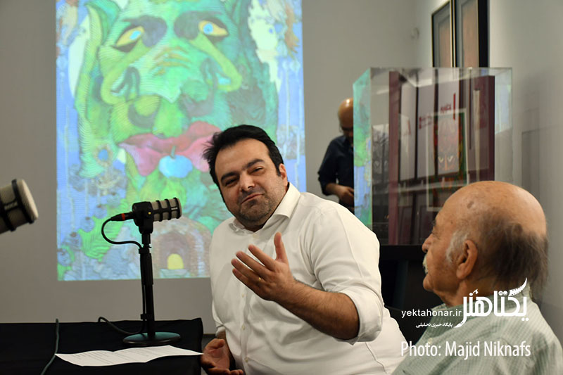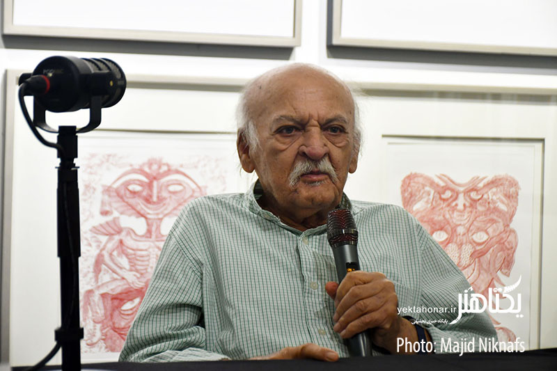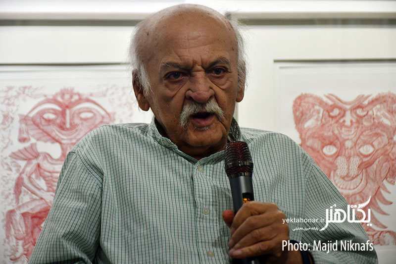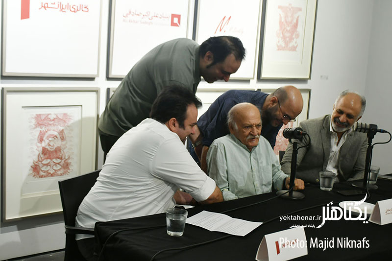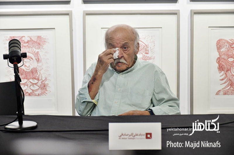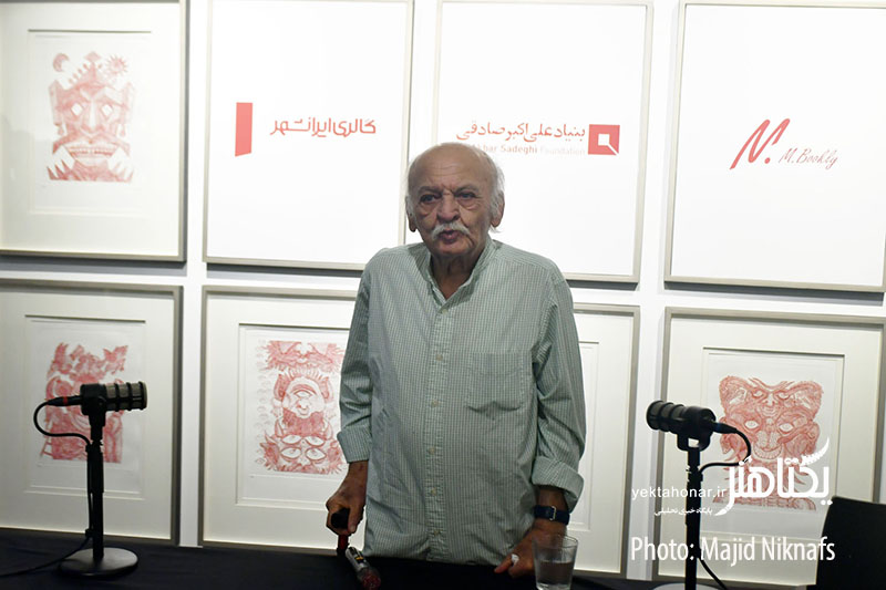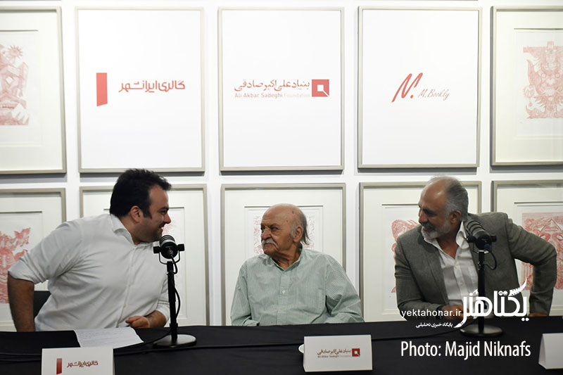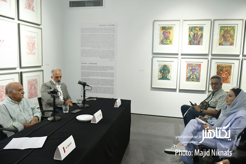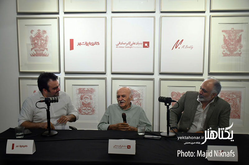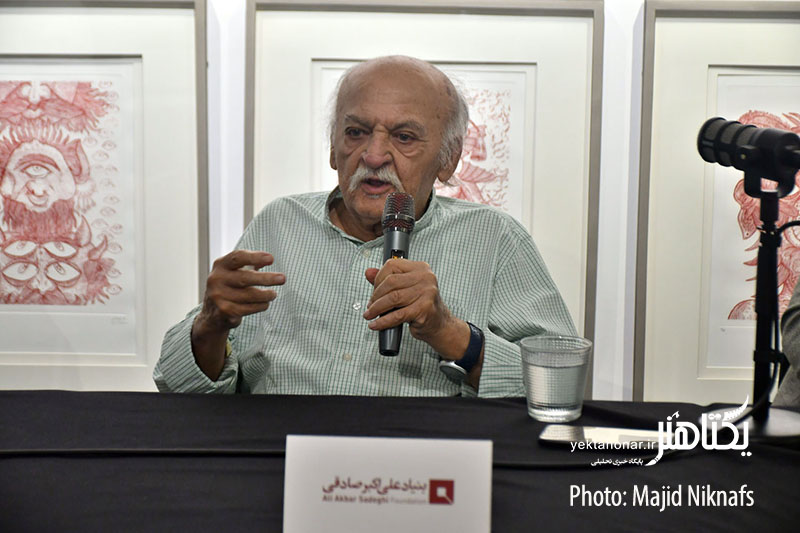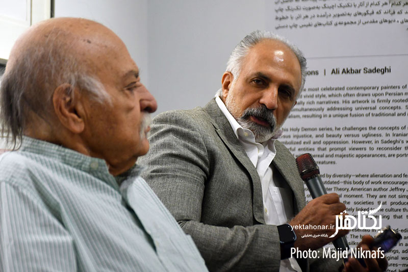 نشست خبری نمایشگاه «دیوهای مقدس» با حضور علیاکبر صادقی هنرمند نقاش پیشکسوت، مازیار مصور رحمانی مدیر نشر مصور و امیربهمن امیریان مدیر گالری ایرانشهر، پیش از ظهر چهارشنبه ۷ خرداد ماه در محل این گالری برگزار شد.